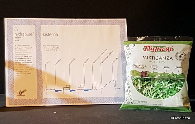 Vegetales Línea Verde Navarra and their product Mixticanza, which is new since october this year. Description: New baby leaf range obtained using our exclusive system hydraupe, an innovative process that keeps the authentic taste and natural texture of the vegetable because we don't use chemicals that alter them.