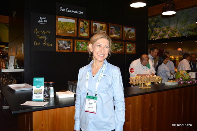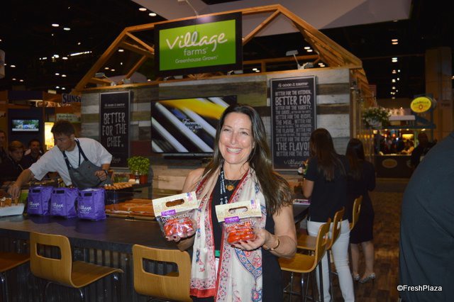 Helen Aquino with Village Farms proudly shows the 5oz. bags with heavenly villagio marzano tomatoes. They are now available at Disney Parks as well as the Epcot Food & Wine festival.