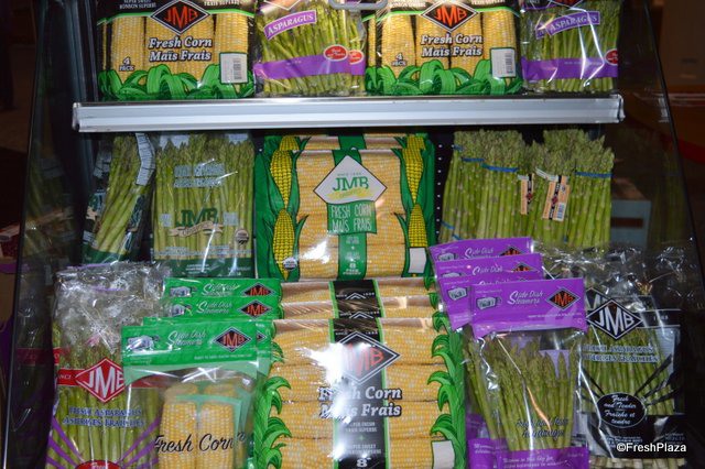 A new product from JMB: side dish steamers. Corn and asparagus in microwaveable bags.