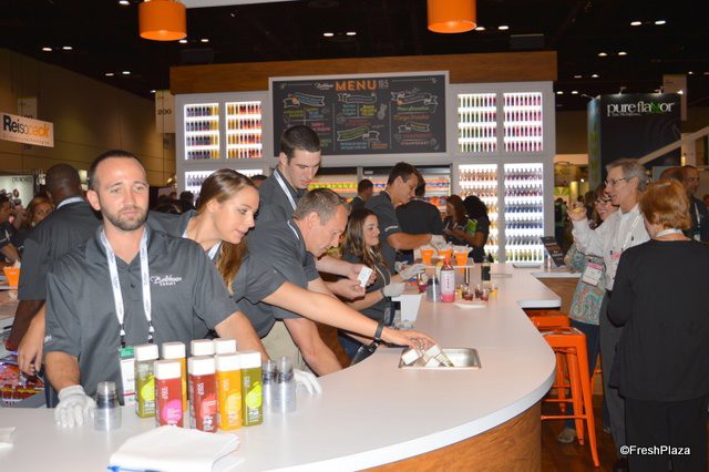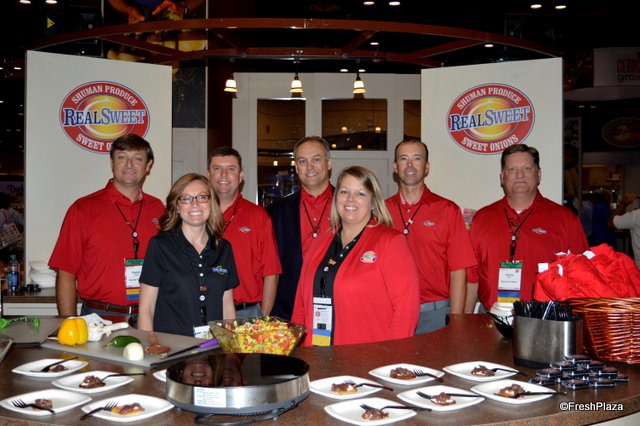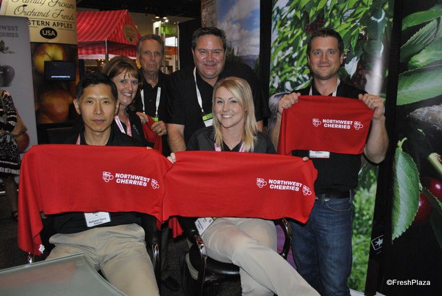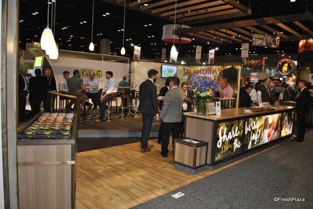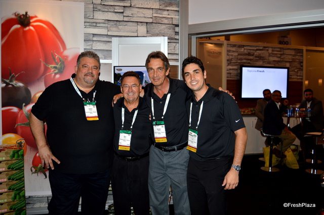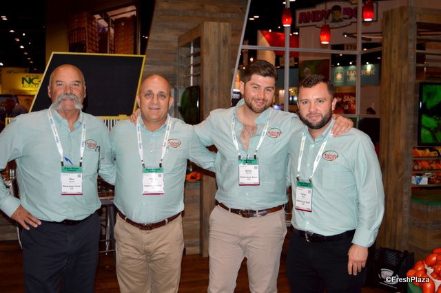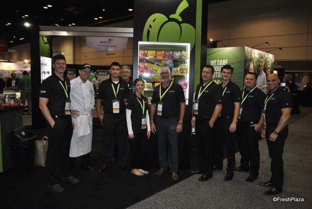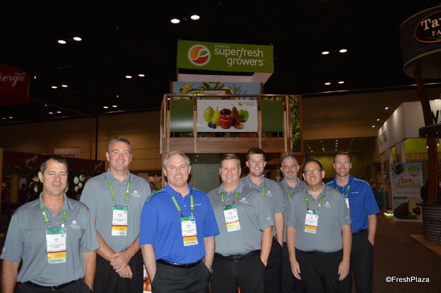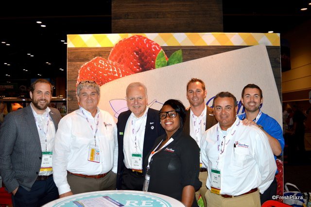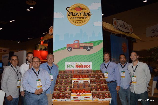 Happy faces in the Sunripe booth showing the new Oh So Rosso: Ricardo Torres, Lucas Conran, Carlos Torres, Carlos Blanco, Robert Meade, Victor Uribe and Lyle Bagley.