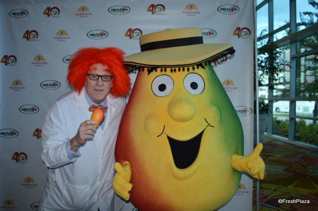 Zany Professor Mango and the National Mango Board mascot, Jango Mango