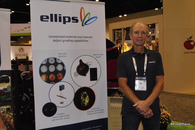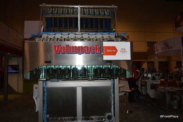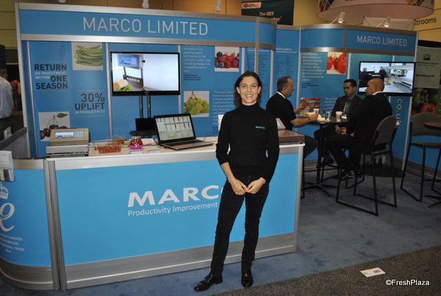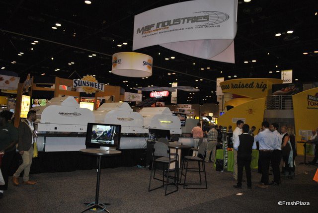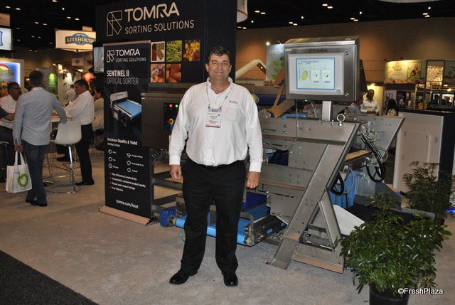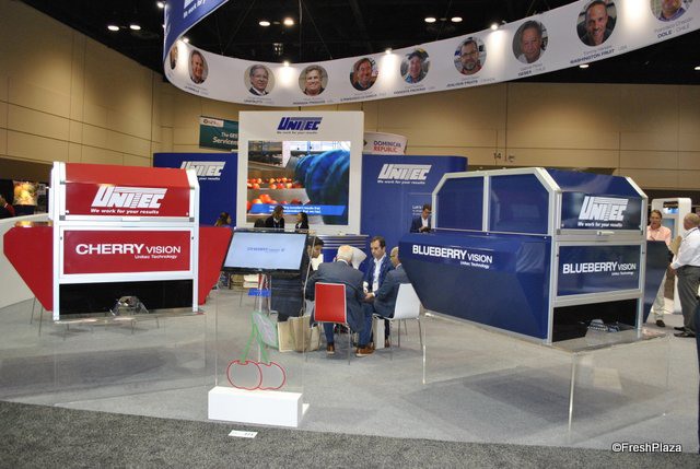 The booth of Unitec displays machinery, which is suitable for cherries and bluerberries