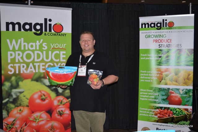 Richard Butera with Maglio Companies showing the 1 lb. Chunked Melon Solution.