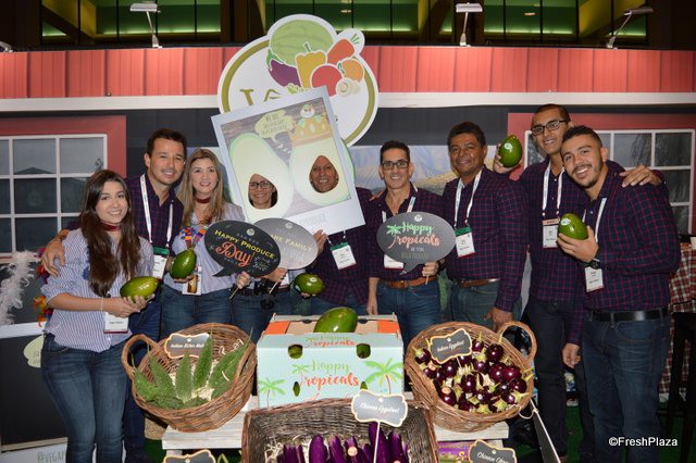 Having fun with avocados at the Vega Produce booth. From left to right: Maria Fayad, Alejandro Toro, Andrea Sabbagh, Marianela Holly, Phil Quintana, Vladimir Verdecia, Edin Mejia, Edin Mejia Jr and Felipe Jimenez.