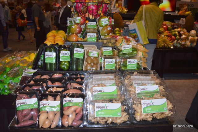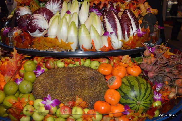 Specialty produce, including jackfruit, on display at Coosemans' booth.