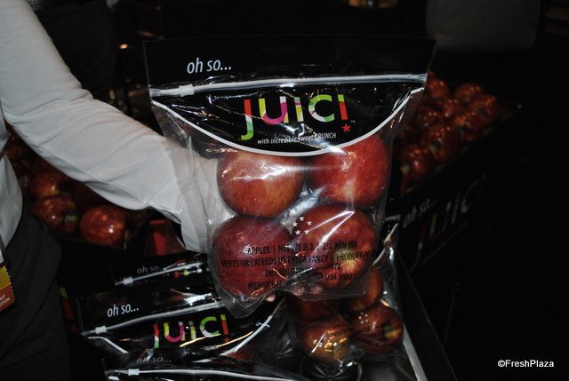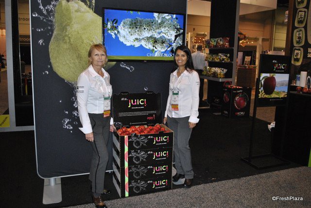 Jill Morrisson and Linda Rabadan promote the Juic!. A very juicy apple which is gaining in popularity. They have a new display, but also offer two pound bags