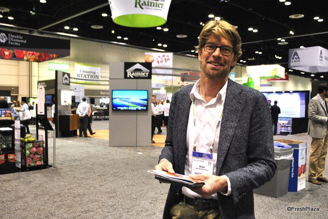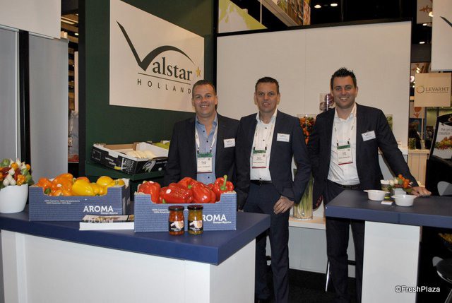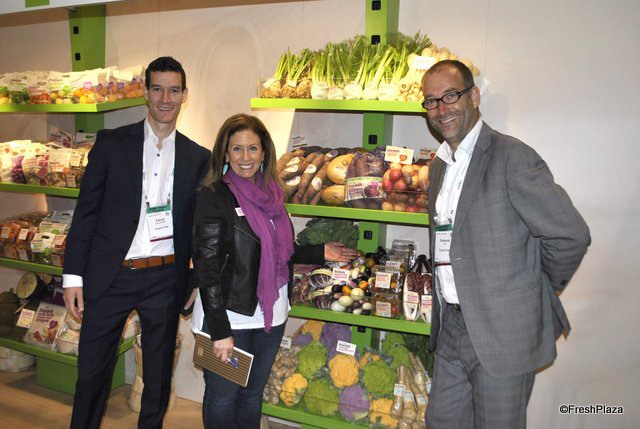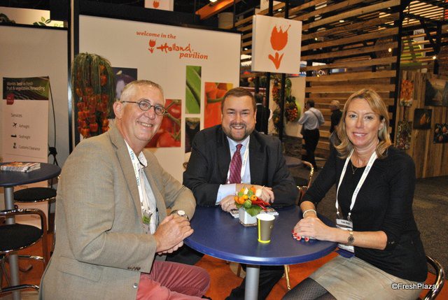 Gert Mulder from Frugiventa, Jim Prevor and Linda Bloomfield promoting the Amsterdam Produce Show