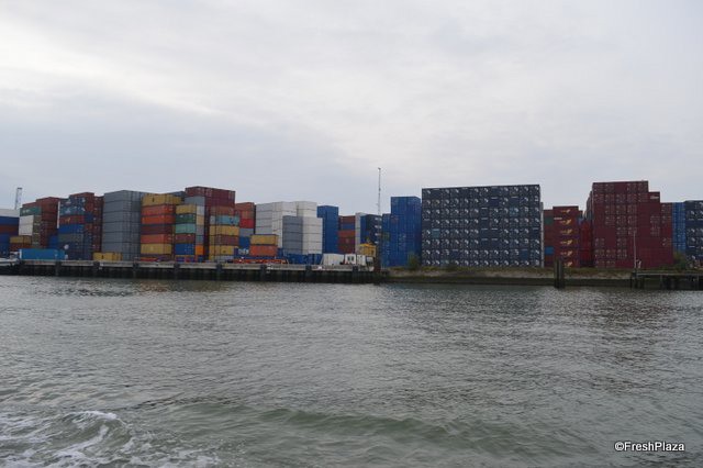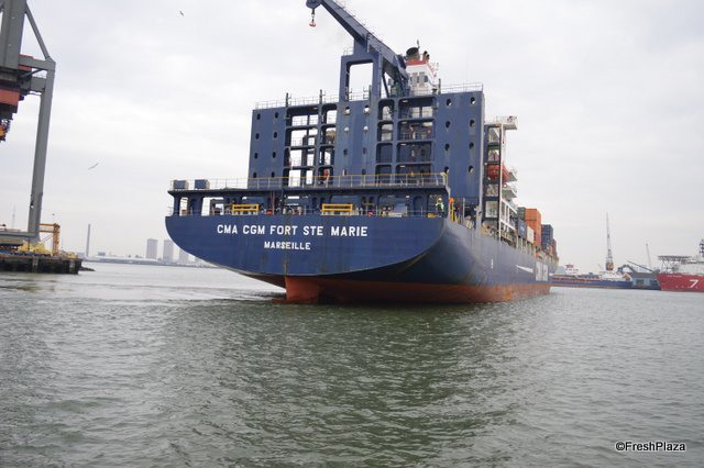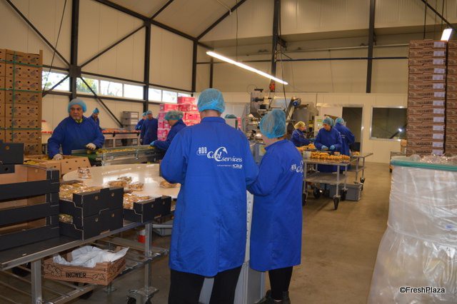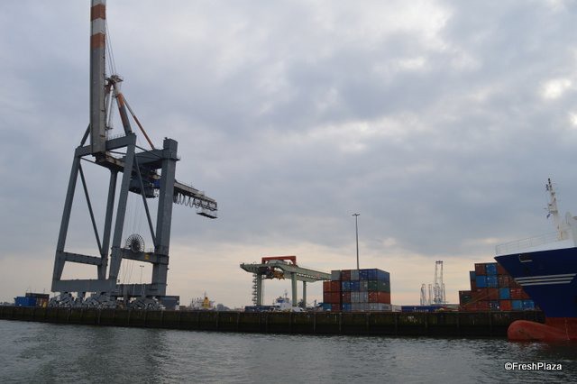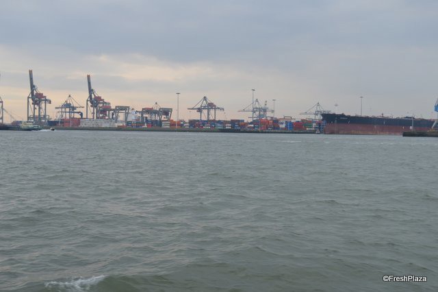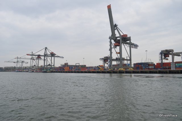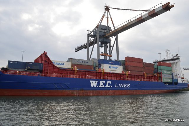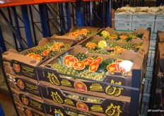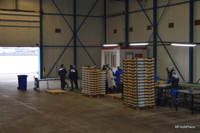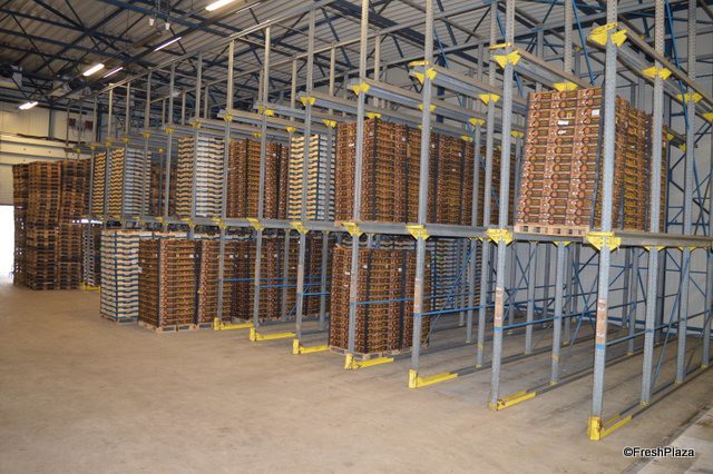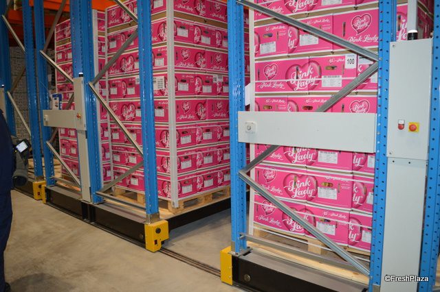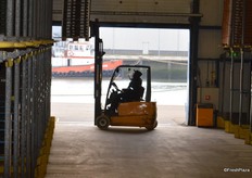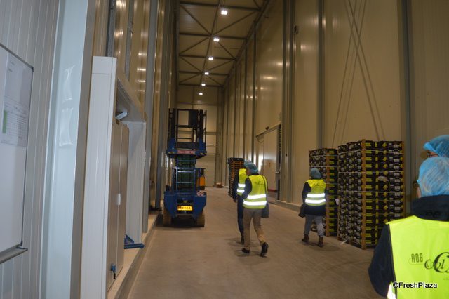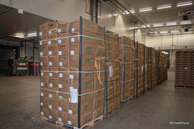 The fruit goes straight from cold storage to the ship. Each cold room can hold 1000 pallets.