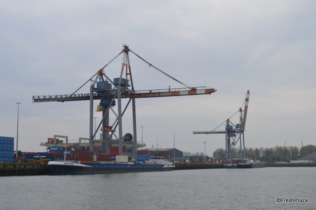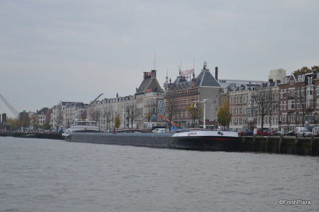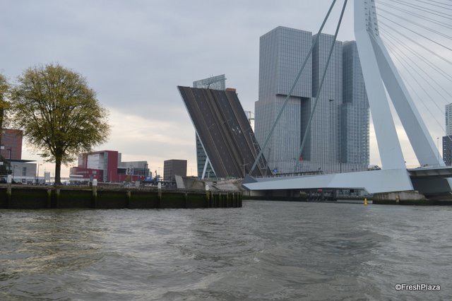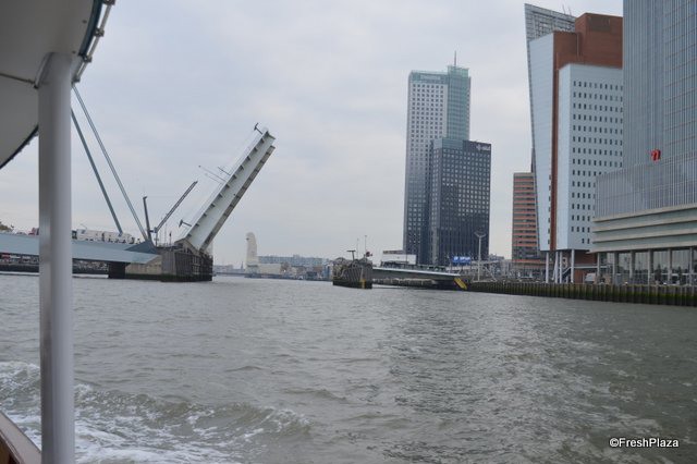 We were treated to a trip up the Nieuwe Maas river into the city as far as the Erasmus bridge. This is the Cruise terminal where the big cruise ships dock.