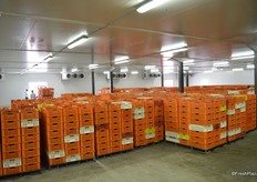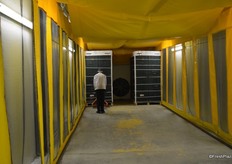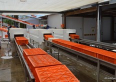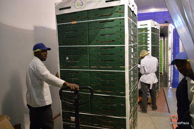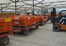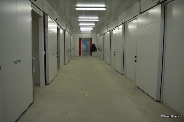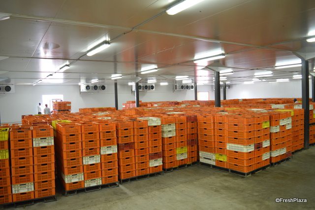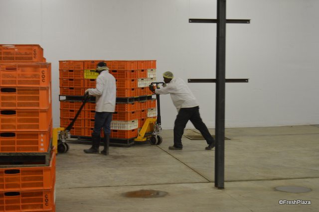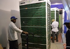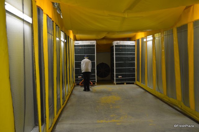 Boxes are removed from the trailers and taken to the pre cooling room.