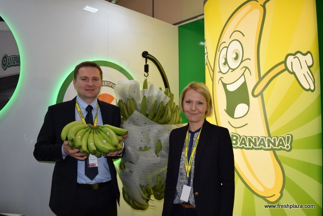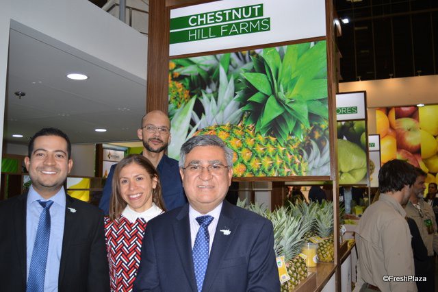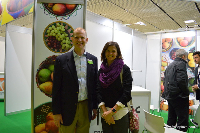 Ophelia Wells, Simon Trewin and Fernanda Guajardo at the SH Pratt stand. The company is here for the first time, it is part of the diversification of the company who, traditionally a banana supplier have also build a large logistics side and are now looking to do more fresh products.