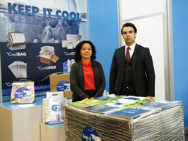 "International Sales Manager Guliz Yildiran with Irfan Esgun of Ozerden Plastik San (Turkey); established in 1958 and attended the fair to promote their "Coolpack" products."