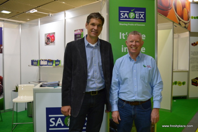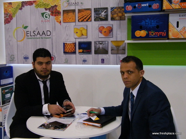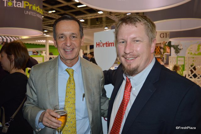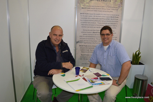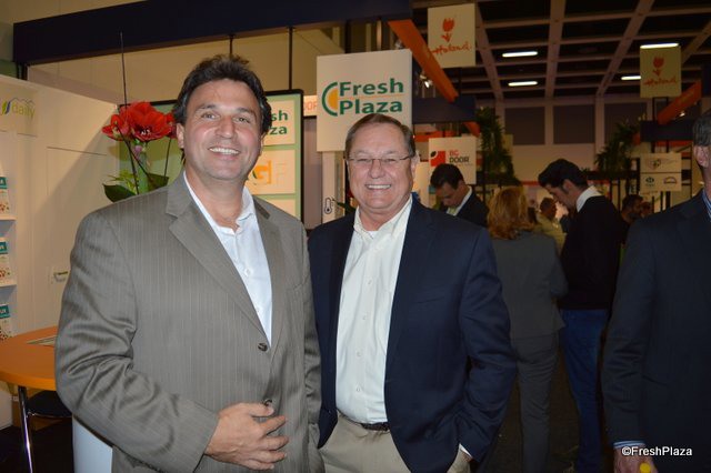 Visiting FreshPlaza's booth Robert Thomas and Jimmy Johnson with Premier Citrus Packers in Florida.