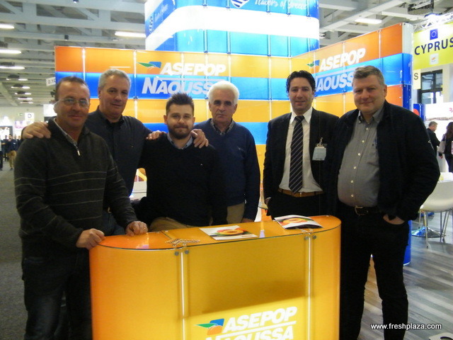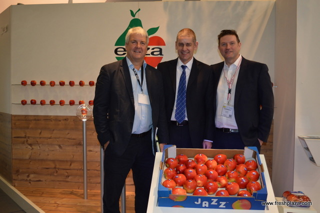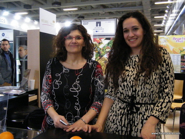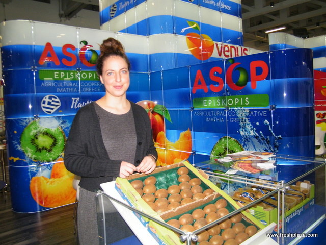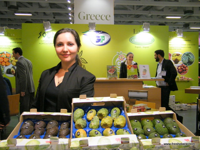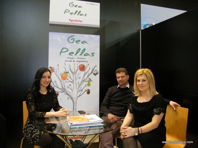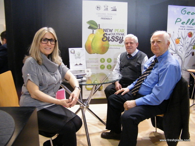 At the Farm Hellas (Greece) stand: Sofia Kempapidou with Vasilios Kempapidis and Prof. Miltiadis Vasilakakis. Sissy pears, a new pear variety will be soon out of the Italian market.