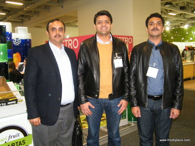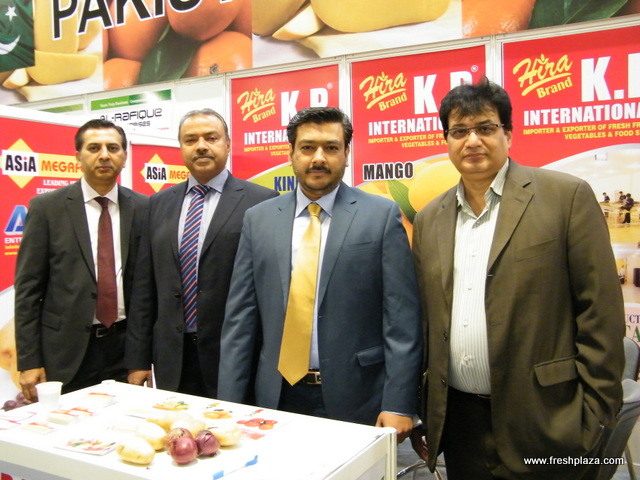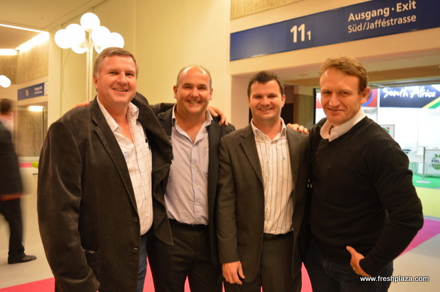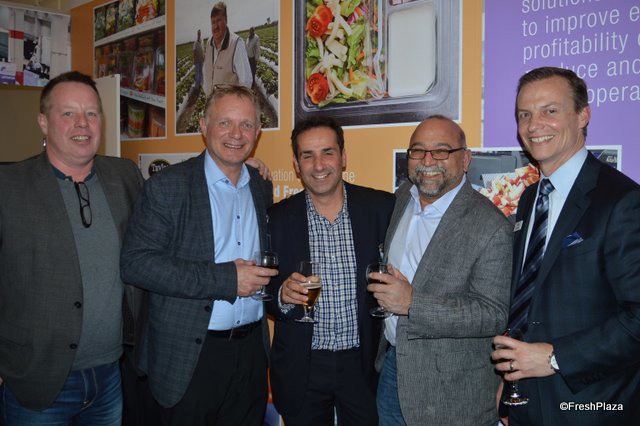 An international group: Gunnlauger Reynisson and Mani Asgeirsson with Hollt & Gott from Reykjavik. Steve Tsakoumakis with Kapiris Brothers from Australia, Syed Zafar with Zafar Produce from the US and Jim Lemke with Oppy from the US.