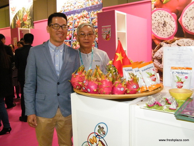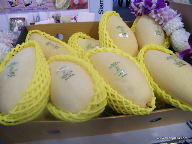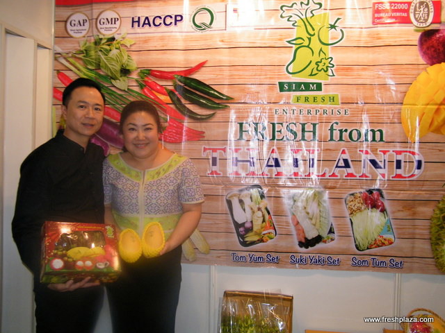 Nattapon Suewatanakul with wife Apple at Siam Fresh (Thailand) stand; mangoesteen and mango inquiries were non-stop at their stand.