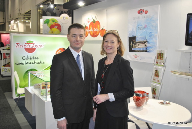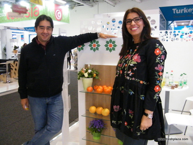 Delassus CEO Kacim Bennani-Smires with Sales & Marketing Director Fatiha Charrat of Delassus - Morocco; Delassus is not only known for their Clementine, Nour and Nadorcott but also making their names in the tomato industry where they invest a lot in R & D. Delassus is also now using the brand Clemengold for some of their customers.