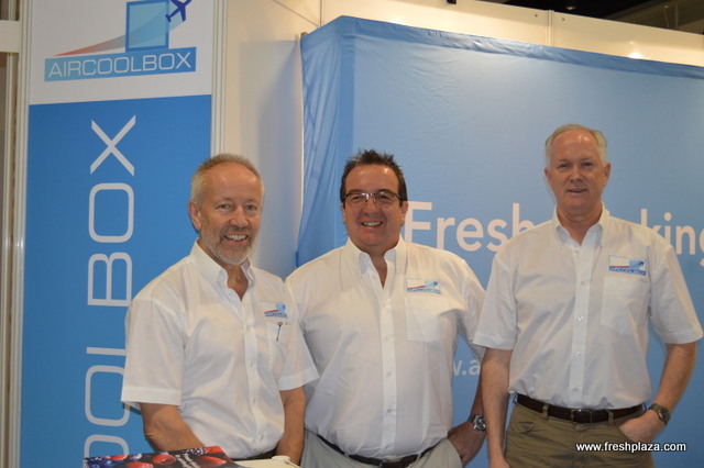 Gery Mundy, Keith Elliot and Keith Packer from AirCool Box. First time in Berlin with their unique reusable shipping box which is collapsible to half the size, cost efficient and also fits on a standard pallet and six fit perfectly on a PMC. It very thermally efficient and holds the temperature for up to 120 hours.
