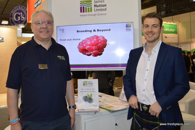 Jonathan Snape and Jamie Smith from James Hutton Ltd. The company have many breeding programs including blackberry and raspberry. The Glen Dee raspberry which already has commercial volumes in production and has been nominated for the Grower's Award.