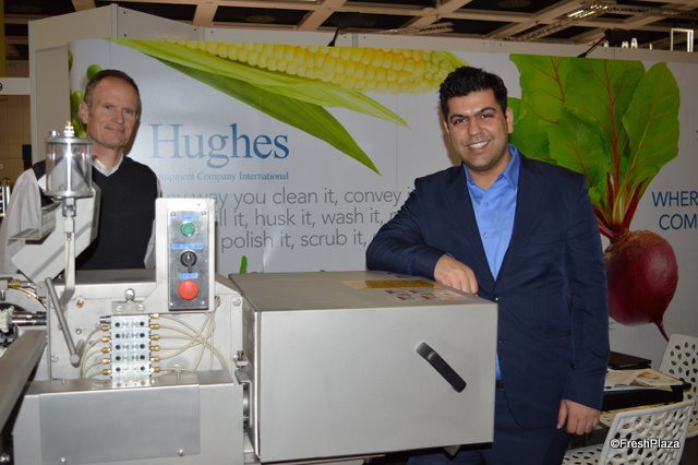 Russ Schlager and Mojtaba Ghadiri with Hughes Equipment Company. The company manufactures equipment for processing of fresh, canned and frozen vegetables.