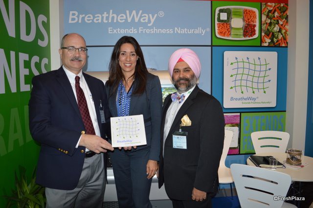 Proudly showing the BreatheWay technology are Steven Bitler, Teresa Scattini and Shehbez Singh with Apio, Inc.