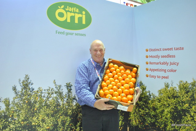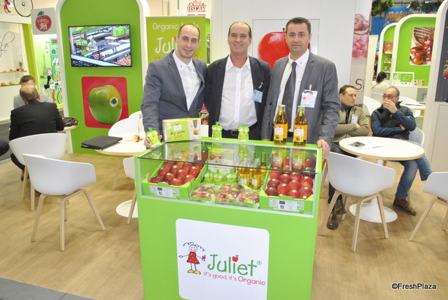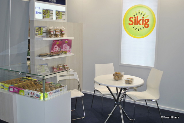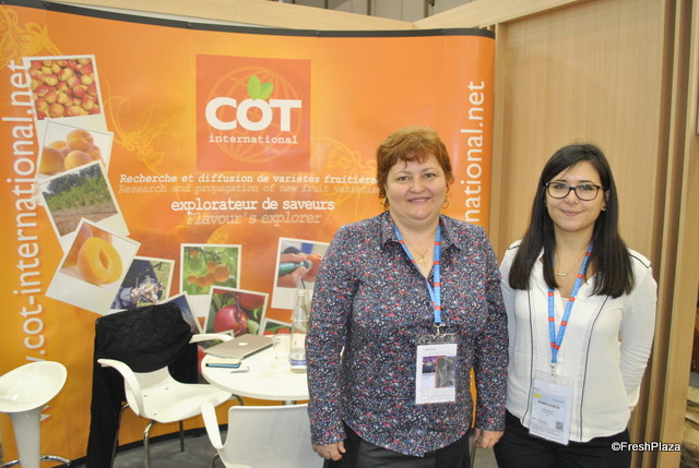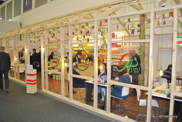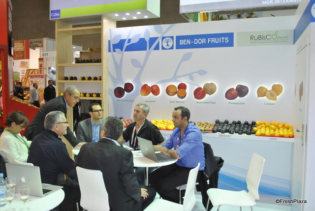 The booth of Ben-Dor Fruits, a breeder of stone fruit