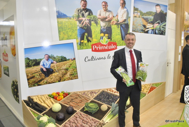 Emmanuel Descloux from Priméale has new packaging for the green beans and brussels sprouts