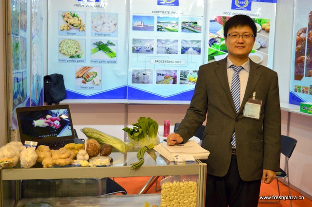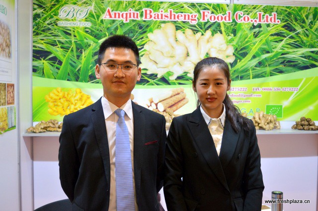 Charlie, Chinese name Zhenzhang Zhu, is the export manager of Anqiu Baiseng Food, an export company of ginger and other Chinese vegetables. Next to him is Rita.