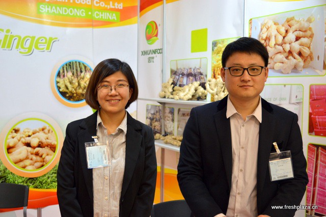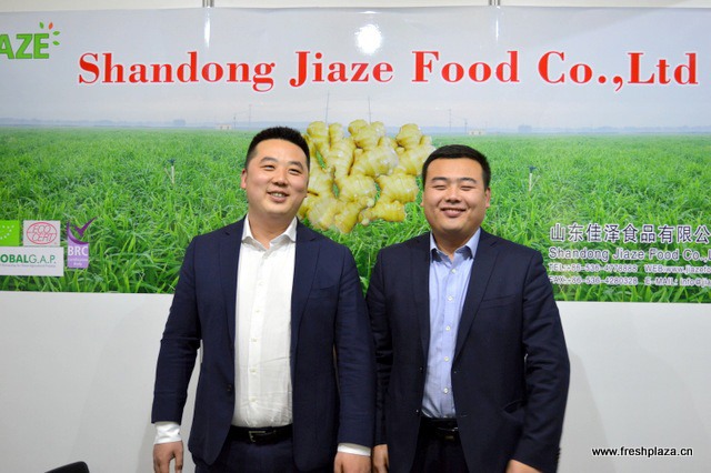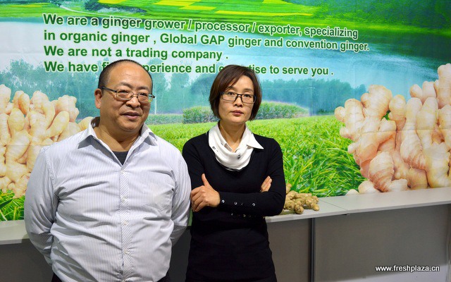 Shandong Jiaze Food with Bryan Wang and Pan Yangyan, general manager. The company grows and exports ginger from Shandong to Europe.
