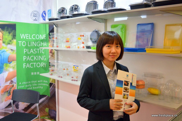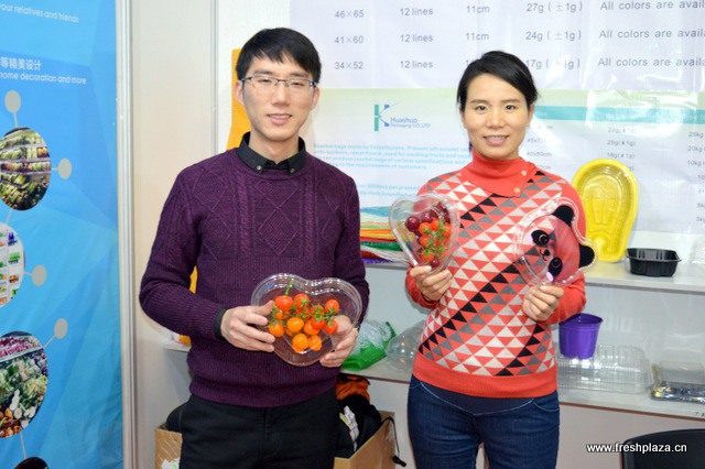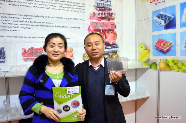 Qingdao Great Industry and Trade produces plastic packaging for fresh fruits and vegetables. On the photo is Selina and the company's general manager.