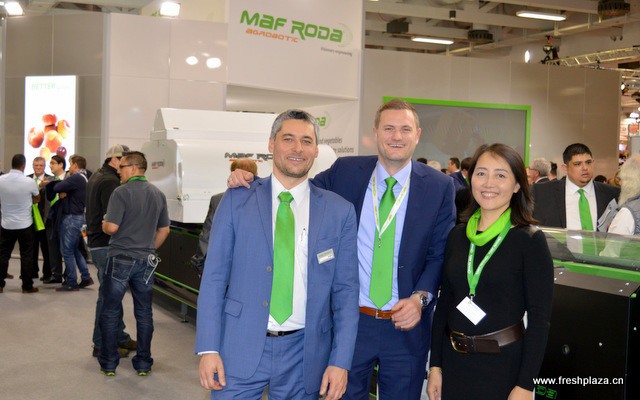 Jean Christophe, Fabrice Blanc and Gai Wei of MAF Roda. The company is a French manufacturer of sorting line technology and equipment. Jean Christophe and Gai Wai are responsible for the company's activities in China.