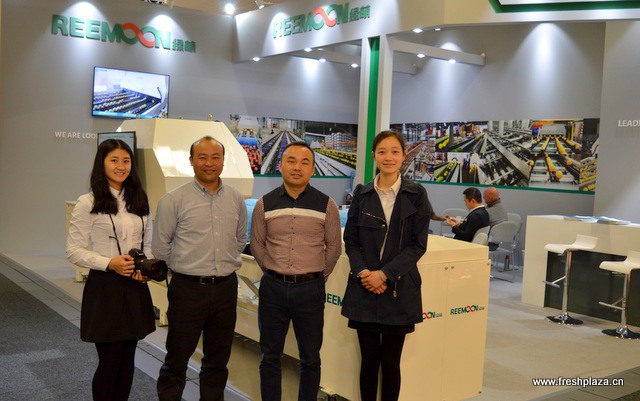 The sales team of Reemoon, a Chinese producer of sorting equipment and lines. Second from left is Zhu Yi, the General Manager of the company, and all the way to the right is Xiao Lili, his assistant.