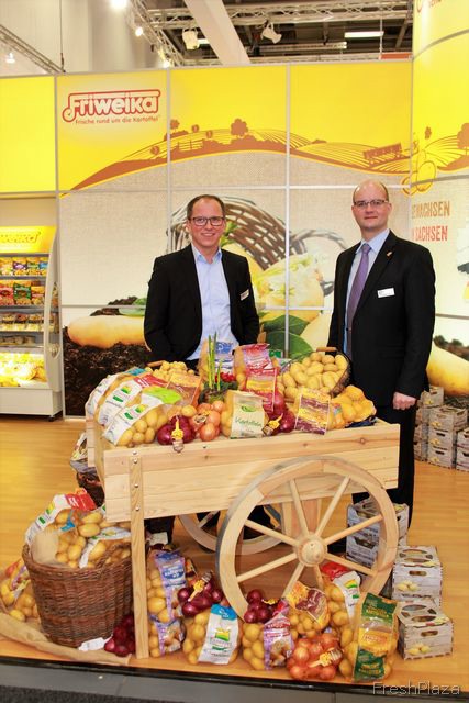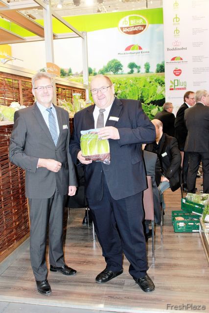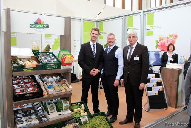 The EO Asparagus & berry fruits stand offers a friendly welcome by the gentlemen Sören Knoop and Matthias Ment from Beelitz Vertriebs GmbH and Karl-Heinz Henke CEO of Kirchdorfer Spargel- & Beerenfrüchte GmbH.