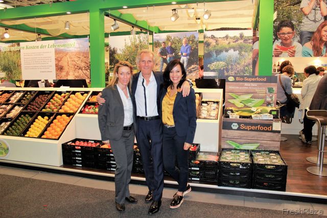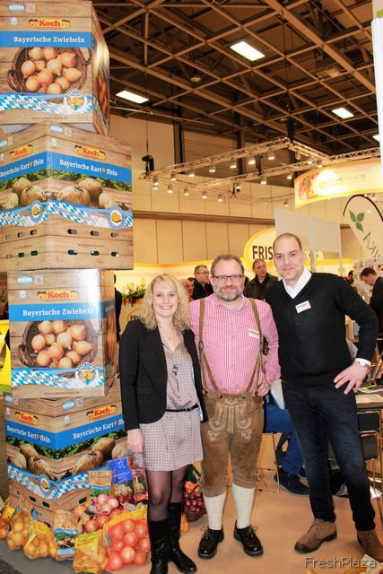 Robert Koch (middle), owner of Johann Koch e.K. is happy to welcome the guests to the exhibition stand together with his daughter Franziska and his co-worker Ioannis Ioannidis. The product range has recently been expanded with various foods, amongst them ginger and dates.