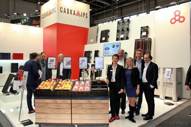 Jenny Adebahr (Marketing Director), Jacques Vanmoortel (CSO) and Michael Koch (CEO) of Cabka Group GmbH, as well as Barbora Spurná (Product Manager) in the middle and Michael Koch 2.v.r. From Pack'nlog GmbH are at the shared stand.