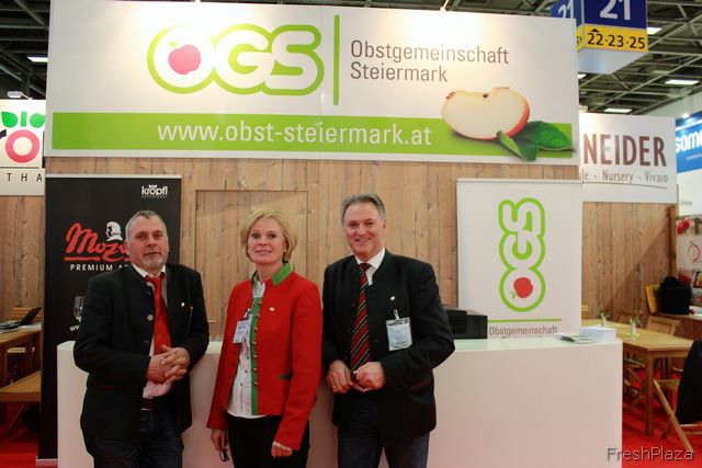 The fruit comunity of Styria from Austria will report on the problems of the frost in 2016. Photo: Willibald Flechl (chairman), Roswitha Sommer (managing director) and Karl Purkarthofer (chairman).