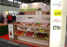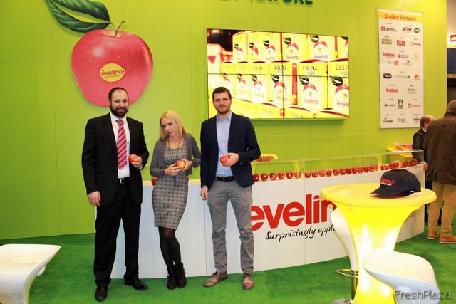 The Evelina apple looks back on a ten-year success story in Germany. At the Evelina GmbH booth, Christoph Kaneppele, Birgit Frei and Bernd Oberhofen proudly present their product.