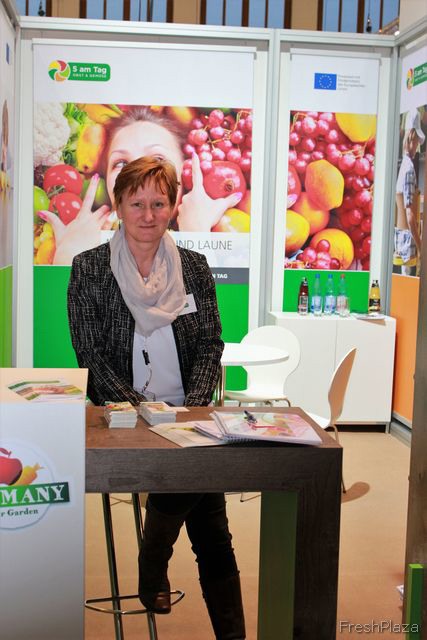 Monika Becker at the stand 5 am Tag e.V. is pushing for more fruits and vegetables in schools and at the workplace.
