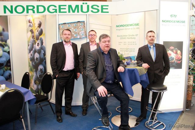 Nordgemüse Krogmann GmbH from Hamburg presents itself as an import and export company of fresh and frozen fruits and vegetables at Fruit Logistica. Christian Steen, Stephan Westphal, Wilhelm Krogmann and Timo Borchert were at the guests' disposal.