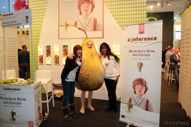 The marketing of the conference pear will now also be actively launched in Germany. Wonderful tasting is offered by Maria Otto, 'Pear' Markus and Mirella Zörner.