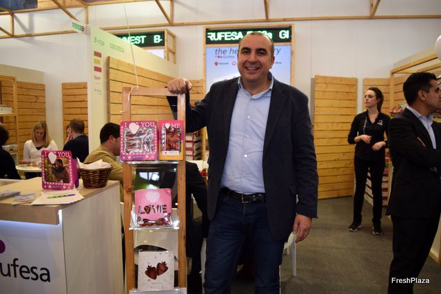 Carlos Cumbreras, manager of Grufesa, launching new strawberry packaging formats for Valentine's Day.