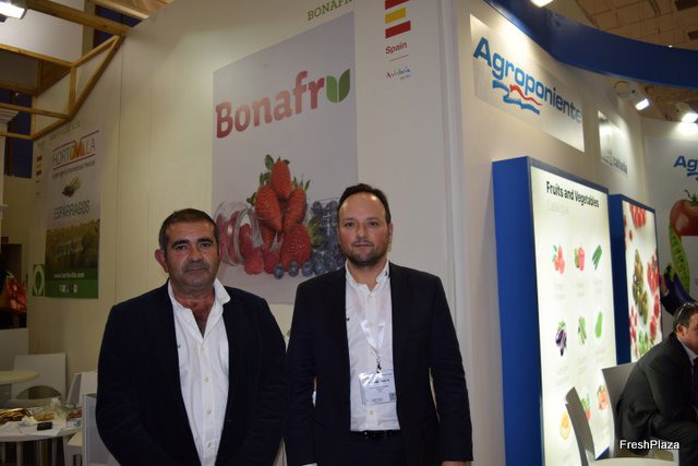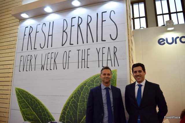 Alberto Jiménez and Thomas at the stand of Euroberry, of the Hortifruit group.