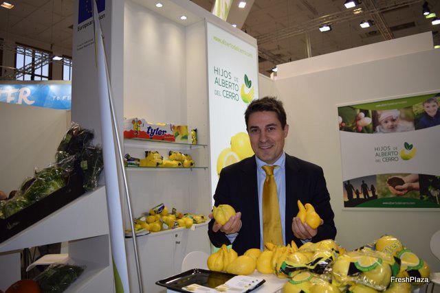 Enrique Fuentes, of the commercial department of Hijos de Alberto del Cerro, promoting Murcian lemons. In the short term future, they will start their own line of organic lemons.
