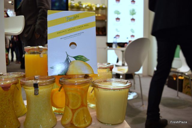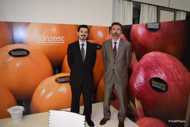 Stand of the Valencian company Frío Mediterráneo promoting its brand Sunzest, used for the marketing of citrus, kakis and pomegranates.