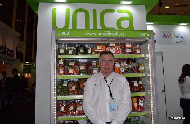 Miguel Pérez, salesman of the Valencian company Mirofresh, visiting FreshPlaza's stand.