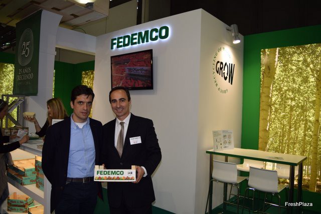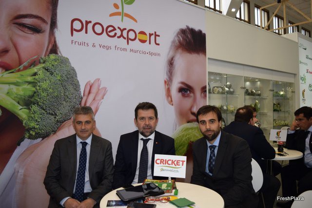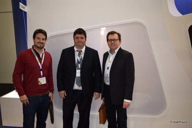 Alberto Casanova, Miguel Ángel Manzano and Bruno Crabé, of Frutas Rafael Manzano, visiting Fruit Logistica.