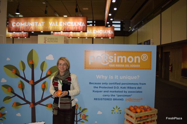 Gracia Teresí, sales director of Frutas Alegre, at the stand of the Kaki de la Ribera del Xúquer Regulatory Council, promoting the Persimon brand.