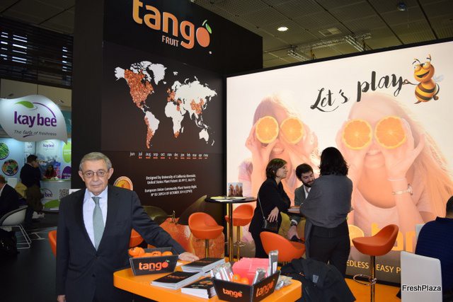 José Pellicer, business development director at Eurosemillas, promoting the late seedless mandarin variety Tango.