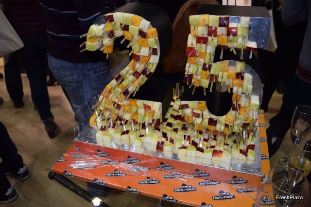 The quarter of a century was decorated with fresh fruit skewers.