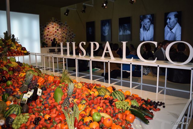 Stand of the Valencian company Hispalco, decorated with all sorts of fruits and vegetables.